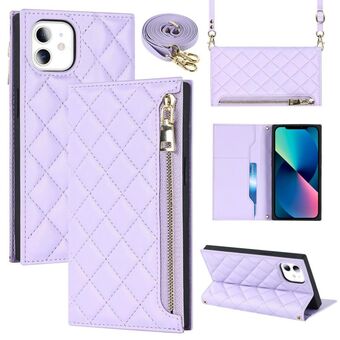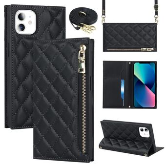 Θήκη τηλεφώνου από δέρμα με ανάγλυφο σχέδιο διαμαντιού για iPhone 11 με κορδόνι (Καφέ)