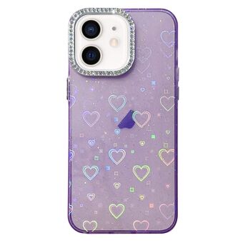 Θήκη τηλεφώνου IMD Acrylic για iPhone 11 με σχέδιο καρδιάς και διαμαντένια στεφάνη φακού (Ροζ)