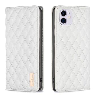 For iPhone 11 Diamond Lattice Magnetic Leather Flip Phone Case(White)