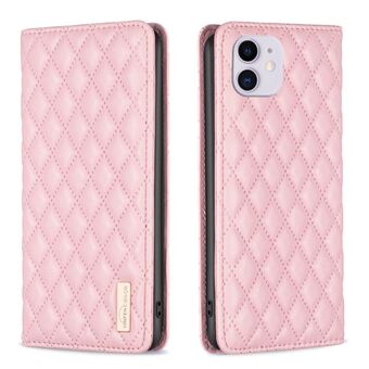 For iPhone 11 Diamond Lattice Magnetic Leather Flip Phone Case(Pink)