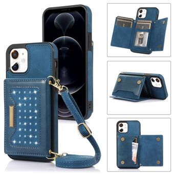 For iPhone 11 Three-fold RFID Leather Phone Case with Lanyard(Blue)
