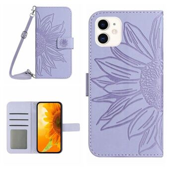 For iPhone 11 Skin Feel Sun Flower Pattern Flip Leather Phone Case with Lanyard(Purple)