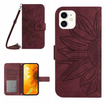 For iPhone 11 Skin Feel Sun Flower Pattern Flip Leather Phone Case with Lanyard(Wine Red)