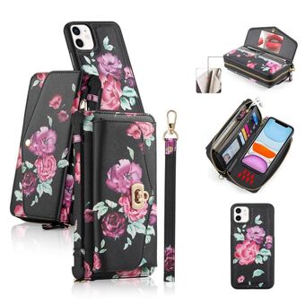 For iPhone 11 POLA Flower Multi-functional Crossbody Zipper Wallet Leather Phone Case(Black)