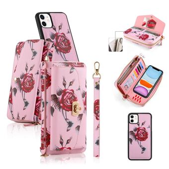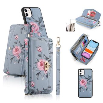 For iPhone 11 POLA Flower Multi-functional Crossbody Zipper Wallet Leather Phone Case(Purple)
