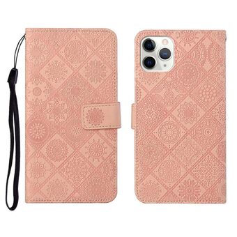For iPhone 11 Pro Max Ethnic Style Embossed Pattern Horizontal Flip Leather Case with Holder & Card Slots & Wallet & Lanyard (Pink)