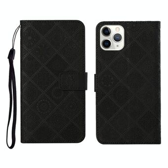 For iPhone 11 Pro Max Ethnic Style Embossed Pattern Horizontal Flip Leather Case with Holder & Card Slots & Wallet & Lanyard (Black)