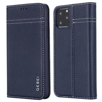 For iPhone 11 Pro Max GEBEI Top-grain Leather Horizontal Flip Protective Case with Holder & Card Slots(Blue) (GEBEI)