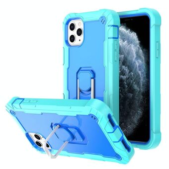 For iPhone 11 Pro Max PC + Rubber 3-layers Shockproof Protective Case with Rotating Holder (Mint Green + Blue)
