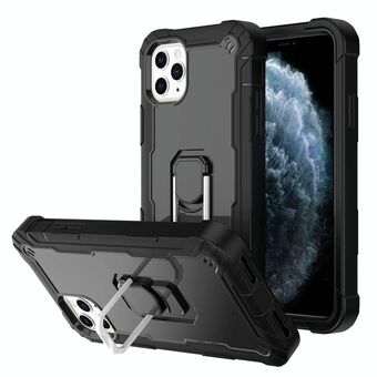 For iPhone 11 Pro Max PC + Rubber 3-layers Shockproof Protective Case with Rotating Holder (Black)