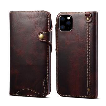Θήκη δέρματος οριζόντιας αναδίπλωσης με μαγνητικό κούμπωμα για iPhone 11 Pro Max, από δέρμα αγελάδας με κερί λαδιού Denior, με υποδοχές καρτών & πορτοφόλι (Κόκκινο σκούρο) (Denior)