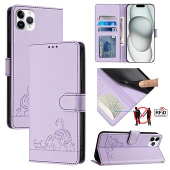 Θήκη τηλεφώνου από δέρμα με ανάγλυφο σχέδιο γάτας και αρουραίου για iPhone 11 Pro Max με προστασία RFID και λουρί (Μαύρο)