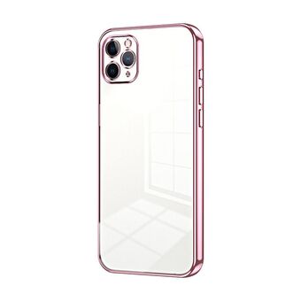 For iPhone 11 Pro Max Transparent Plating Fine Hole Phone Case(Pink)