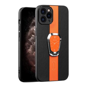 For iPhone 11 Pro Max Magnetic Litchi Leather Back Phone Case with Holder(Orange)