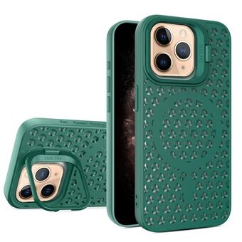 For iPhone 11 Pro Max Hollow Cooling Lens Holder MagSafe Magnetic TPU Phone Case(Green)