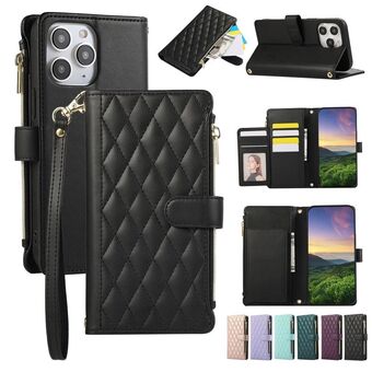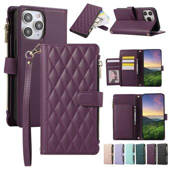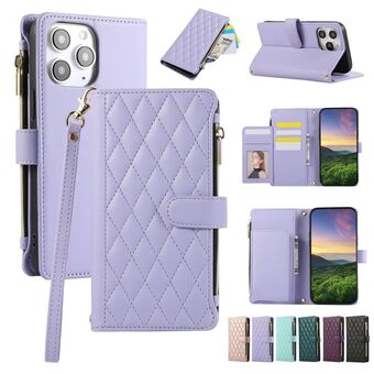 For iPhone 11 Pro Rhombic Zipper Wallet Leather Phone Case(Purple)