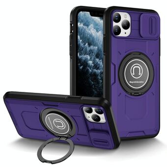 For iPhone 11 Pro Max Sliding Camshield TPU Hybrid PC Magnetic Holder Phone Case(Purple)