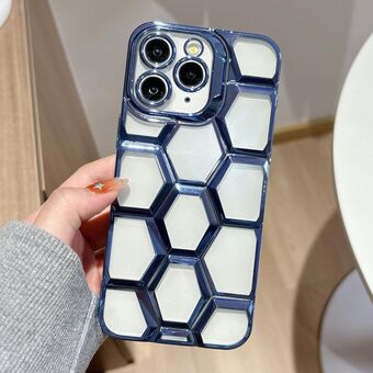For iPhone 11 Pro Max Electroplating Laser Engraving 3D Honeycomb Clear TPU Phone Case(Blue)