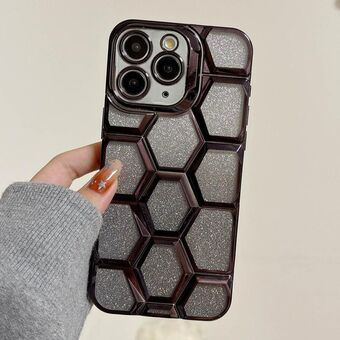 For iPhone 11 Pro Max Electroplating Laser Engraving 3D Honeycomb Glitter TPU Phone Case(Black)