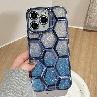 For iPhone 11 Pro Max Electroplating Laser Engraving 3D Honeycomb Glitter TPU Phone Case(Blue)