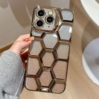 For iPhone 11 Pro Max Electroplating Laser Engraving 3D Honeycomb Glitter TPU Phone Case(Gold)