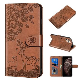 For iPhone 11 Pro Max Sika Deer Embossing Pattern Horizontal Flip PU Leather Case with Holder & Card Slot & Wallet & Photo Frame (Brown)