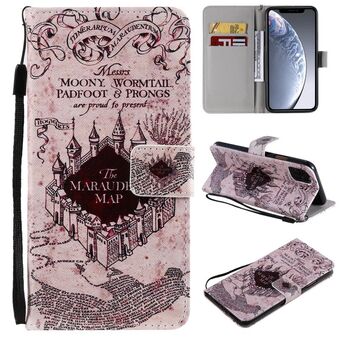 Θήκη δέρματος οριζόντιας αναδίπλωσης με σχέδιο βαφής για iPhone 11 Pro Max, με πορτοφόλι & βάση & θήκες καρτών & κορδόνι (Κάστρο)