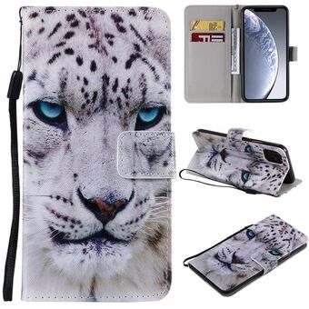Θήκη για iPhone 11 Pro Max, Δερμάτινη οριζόντια με σχέδιο, με πορτοφόλι, βάση & θήκες για κάρτες & λουρί (Λευκό Λεοπάρ)