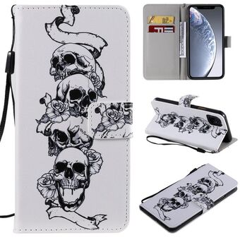 Θήκη δέρματος οριζόντιας αναδίπλωσης με σχέδιο βαφής για iPhone 11 Pro Max, με πορτοφόλι & βάση & θήκες καρτών & κορδόνι (Κρανίο)