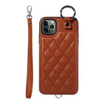 For iPhone 11 Pro Max Rhombic Texture Card Bag Phone Case with Short Lanyard(Brown)