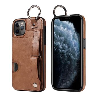 For iPhone 11 Pro Max Calf Texture Wrist Card Slot Ring Phone Case(Brown)