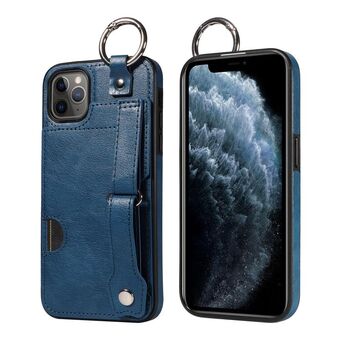 For iPhone 11 Pro Max Calf Texture Wrist Card Slot Ring Phone Case(Blue)