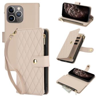 For iPhone 11 Pro Max YM016 Rhombic Zipper Card Wallet Leather Phone Case with Lanyard(Apricot)