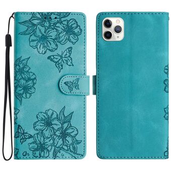 For iPhone 11 Pro Max Cherry Blossom Butterfly Skin Feel Embossed PU Phone Case(Green)