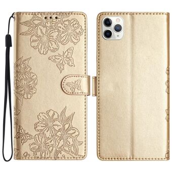 For iPhone 11 Pro Max Cherry Blossom Butterfly Skin Feel Embossed PU Phone Case(Gold)