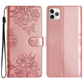 For iPhone 11 Pro Max Cherry Blossom Butterfly Skin Feel Embossed PU Phone Case(Rose Gold)