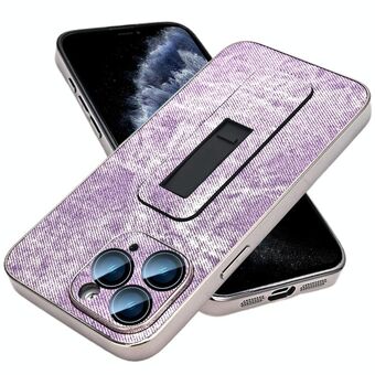 For iPhone 11 Pro Max Denim Pattern Electroplated Push-pull Bracket Cooling Phone Case(Pink Purple)