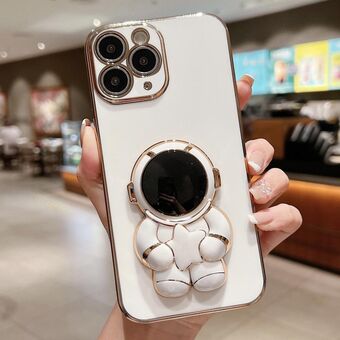 For iPhone 11 Pro Max Embrace Stars Electroplating Astronaut Holder Phone Case(White)