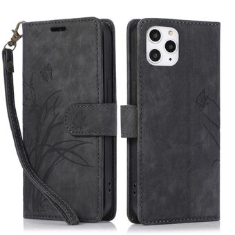 For iPhone 11 Pro Max Orchid Butterfly Embossed Leather Phone Case(Black)