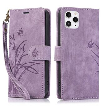 For iPhone 11 Pro Max Orchid Butterfly Embossed Leather Phone Case(Purple)