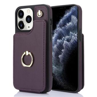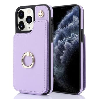 For iPhone 11 Pro Max Organ Card Bag Ring Holder Phone Case with Long Lanyard(Purple)