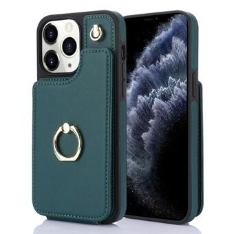 For iPhone 11 Pro Max Organ Card Bag Ring Holder Phone Case with Long Lanyard(Green)