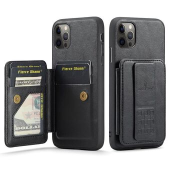 For iPhone 11 Pro Max Fierre Shann Oil Wax Cow Leather Card Holder Back Phone Case(Black) (FIERRE SHANN)