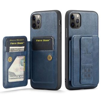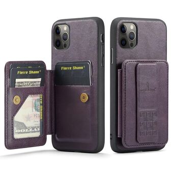 For iPhone 11 Pro Max Fierre Shann Oil Wax Cow Leather Card Holder Back Phone Case(Purple) (FIERRE SHANN)