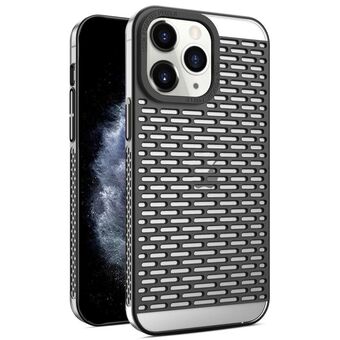 For iPhone 11 Pro Max Hollow Matte Electroplated PC Heat Dissipation Phone Case(Black)