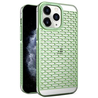 For iPhone 11 Pro Max Hollow Matte Electroplated PC Heat Dissipation Phone Case(Green)