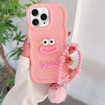 For iPhone 11 Pro Max Cartoon Sausage Mouth TPU Phone Case with Bead Chain(Pink)