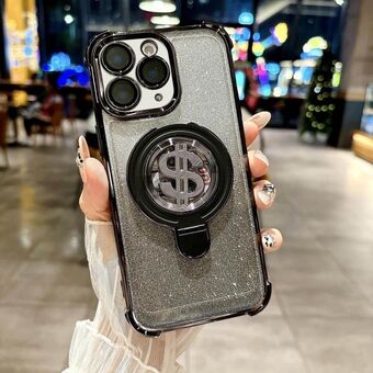 For iPhone 11 Pro Max Space Gradient Glitter MagSafe Holder Phone Case with Lens Film(Black)