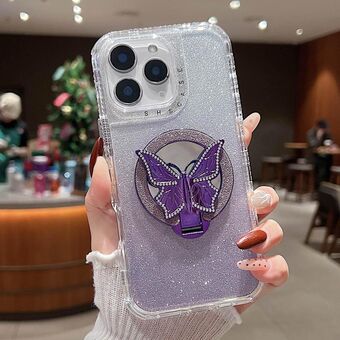 For iPhone 11 Pro Max Mirror Butterfly Holder Glitterr MagSafe Phone Case(Purple)