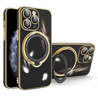 For iPhone 11 Pro Max Multifunction Electroplating MagSafe Holder Phone Case(Black)
